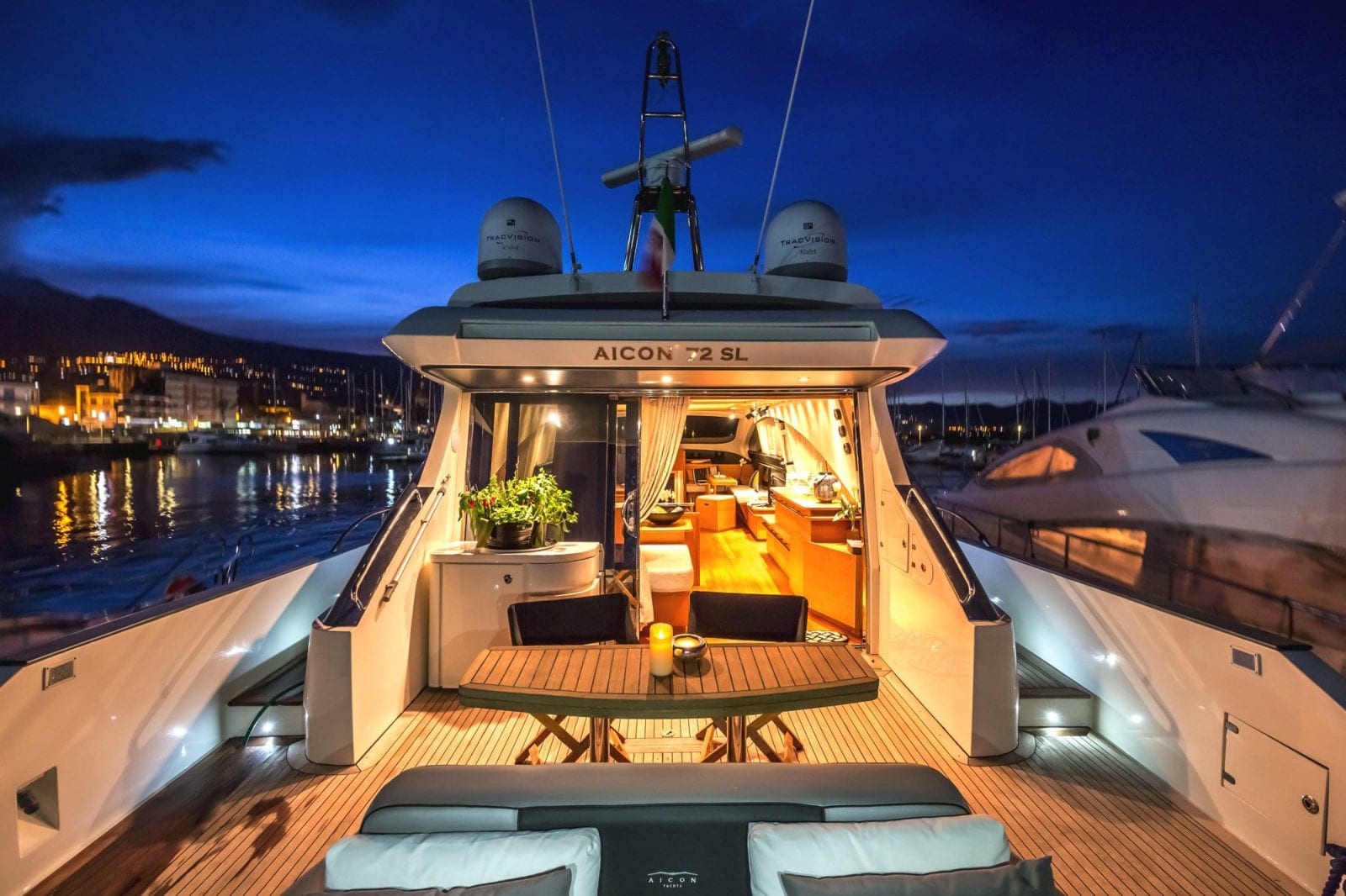 Aicon 72 SL is the perfect motor yacht for both a relaxing day charter and a comfortable week charter. It is ideal for a group of friends / family. With Aicon 72 SL, you can cruise in the different destinations in the Mediterranean: Sicily, Sardinia, the Amalfi coast / Capri area.
