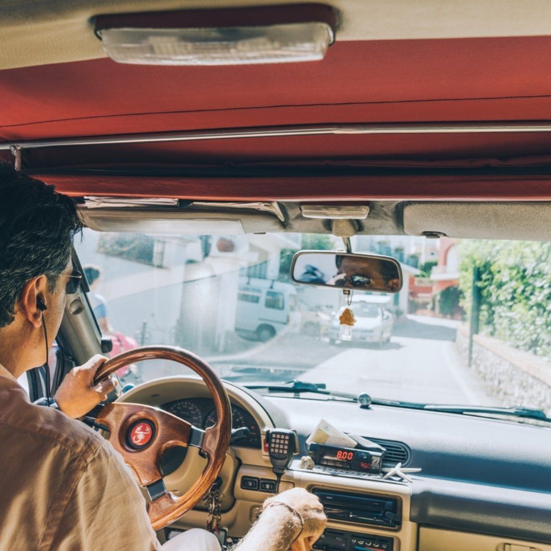 Unless you are very much into walking uphill on a hot summer day, catching a convertible taxi right at your arrival can be a fun way to explore the island. The windy road